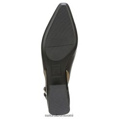 Tämä matala lohkokorko, jossa on snip-kärki ja slingback-olkahihna, tuo tyylikkyyttä yleisiin niittejäsi. pääset perille kauniisti.